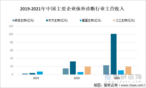 其中2021年硕世生物体外诊断行业主营收入23.4亿元;东方生物体外诊断行业主营收入101.5亿元;基蛋生物体外诊断行业主营收入10.7亿元;之江生物体外诊断行业主营收入19.93亿元。