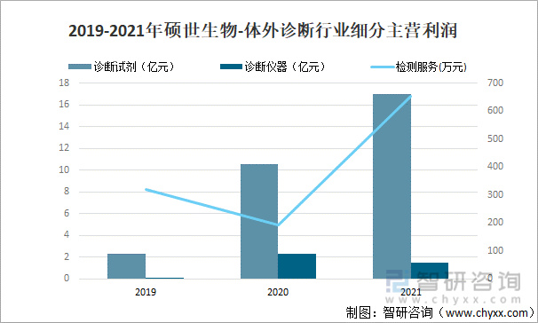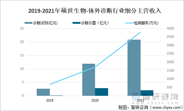 其中2021年硕世生物-诊断试剂主营收入20.91亿元;诊断仪器主营收入2.11亿元;检测服务主营收入3778万元。