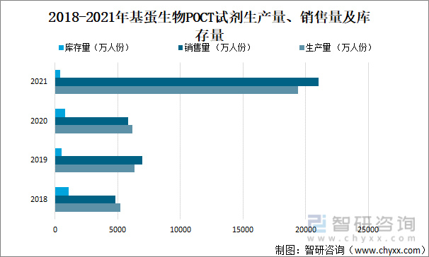 2018-2021年基蛋生物POCT试剂生产量、销售量及库存量